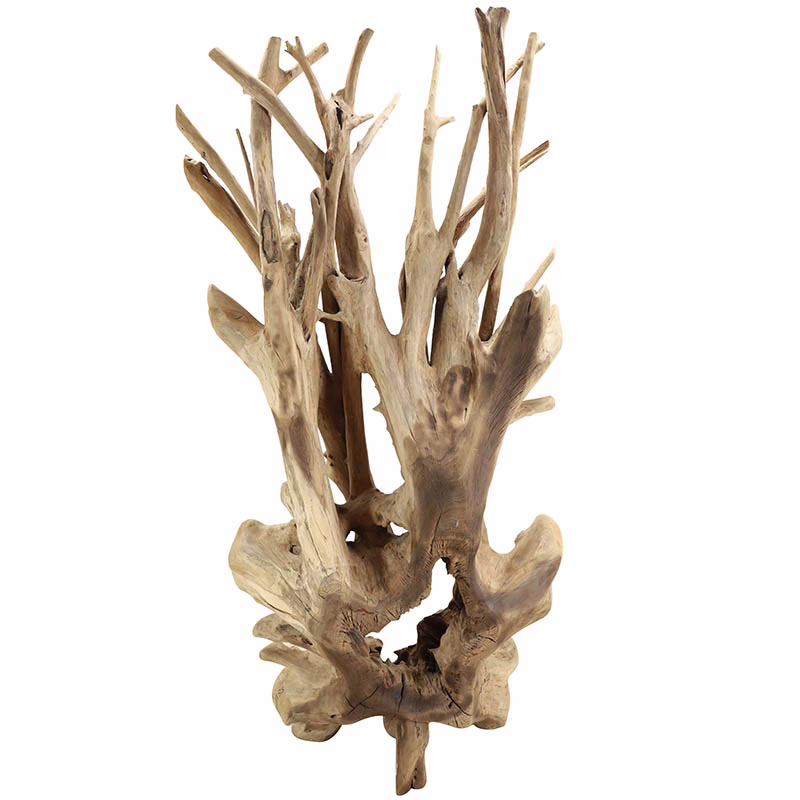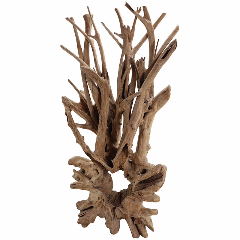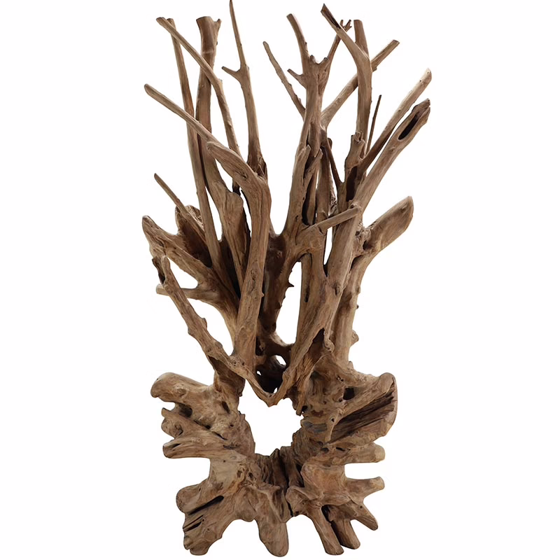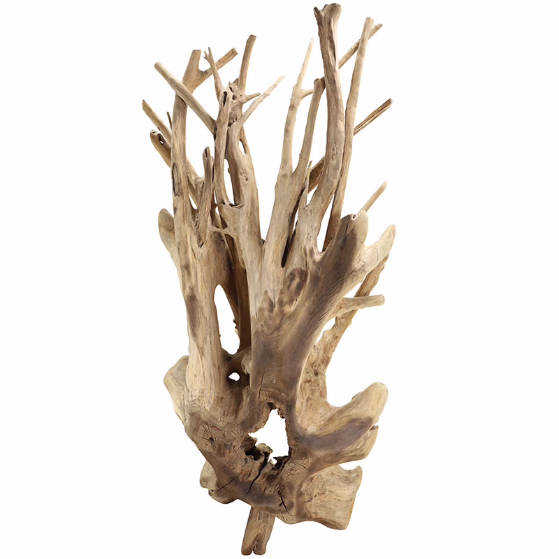 Showcase the raw beauty of nature in your home with this extraordinary freeform teak root sculpture. Crafted from a reclaimed teak root, each sculpture is minimally altered to preserve and express nature’s untamed elegance. Intriguing knots, twists, and holes reveal the wood’s organic texture, making it a captivating centerpiece for your home. Celebrating the intersection of art and nature, each sustainably sourced root exhibits a one-of-a-kind character, ensuring your decor is thoughtful and unique.