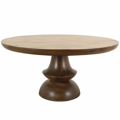 Transform your dining experience with the Gili dining table. This table is a sculptural masterpiece that deserves to be the heart of your dining experience. Crafted from solid wood and hand-finished in an irresistible patina hue, the Gili radiates effortless grace. The Gili presents a sturdy pedestal base that commands attention by creating a striking centerpiece. Whether hosting intimate dinners or grand celebrations, this piece blends contemporary elegance with timeless charm, making every meal a moment to remember.