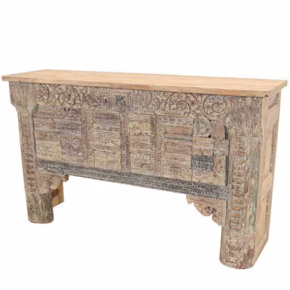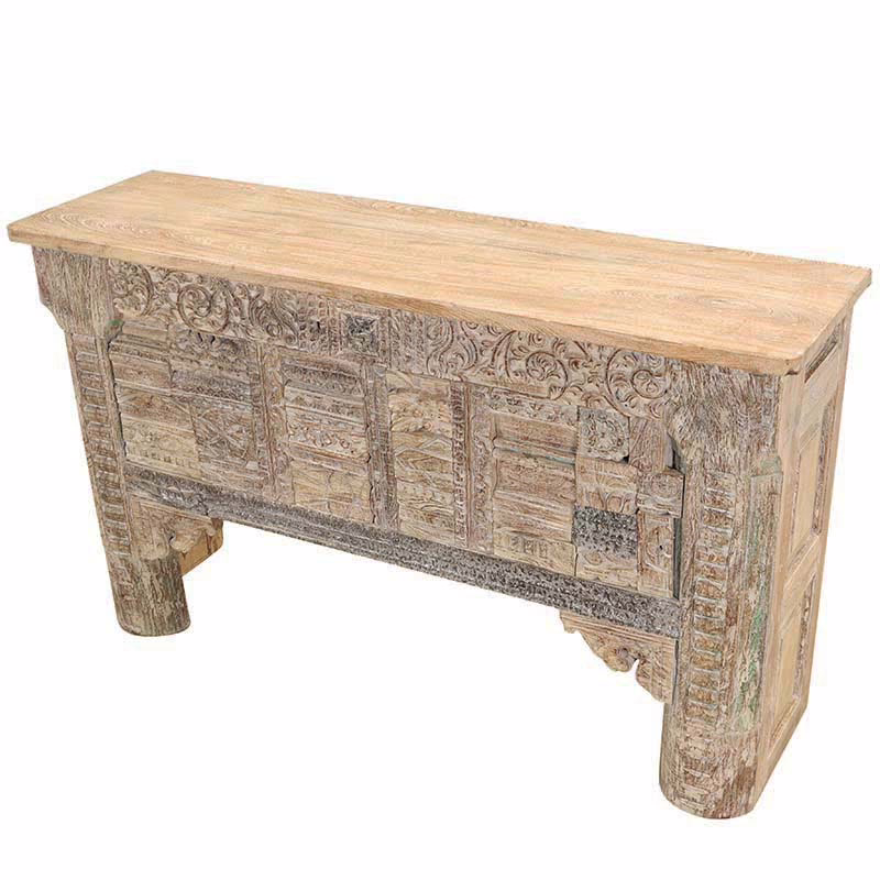 Hand Carved Reclaimed Teak Wood 56” Console Table, MSI 867