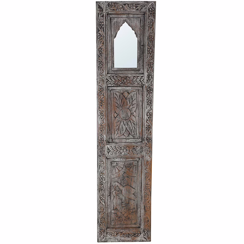 The MSI 865 Aged Natural Hand Carved Wood Wall Panel brings artisan craftsmanship and timeless elegance into any space. Hand carved from solid teak wood and finished in a soft distressed natural tone, this tall statement mirror blends natural texture with refined detail, making it ideal for living rooms, entryways, bedrooms, and curated wall displays. Intricate floral and botanical carvings add depth and character while the elongated vertical design visually opens up the room.