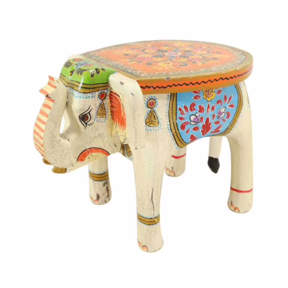Haathi Hand-Painted Elephant Side Table, MSI 854 White